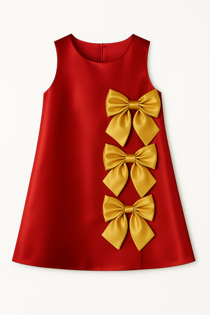 Os laços aplicados na lateral dão o charme especial que transforma o look em uma memória afetiva